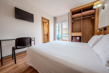 Nuestra Habitación Doble, de 17 m², es la opción perfecta para quienes buscan sencillez, confort y una excelente relación calidad-precio. Con capacidad para dos personas, está equipada con todo lo necesario para garantizarte un descanso reparador durante tu estancia en Santa Ponsa.