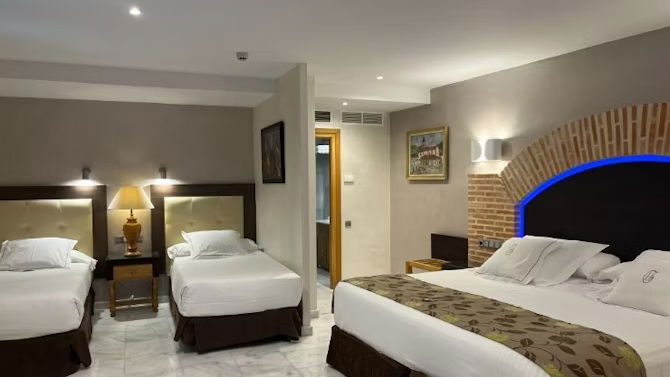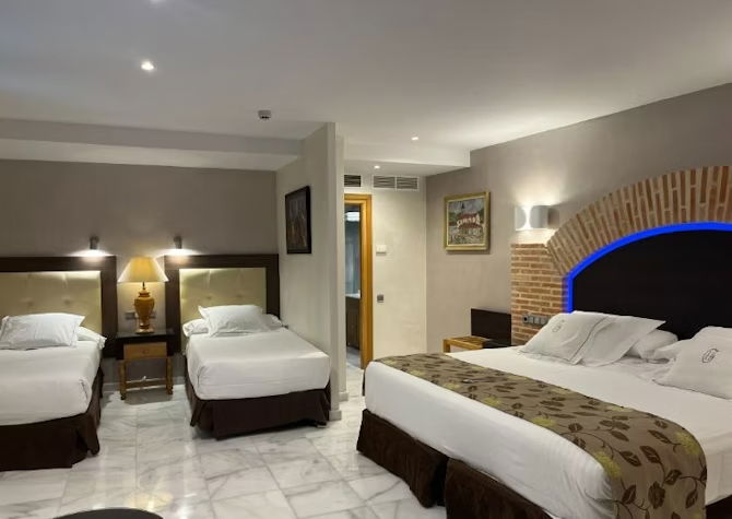 Pensadas para quienes viajan en grupo o con niños, nuestras Habitaciones Familiares ofrecen el equilibrio perfecto entre amplitud, funcionalidad y estilo. Situadas en pleno centro de Toledo, permiten descansar con total comodidad tras un día lleno de historia, cultura y emociones.