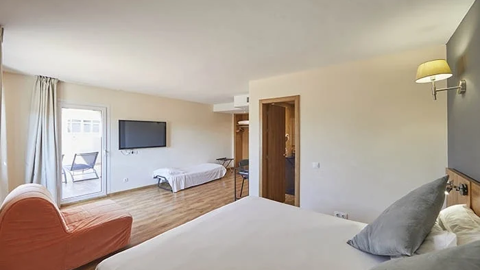 En el Hotel Nura Santa Ponsa Pins pensamos en quienes viajan acompañados, por eso nuestra Habitación Familiar está diseñada para acoger cómodamente a 3 o 4 personas. Con 20 m², ofrece espacio suficiente para disfrutar de unas vacaciones en un ambiente relajado y seguro.