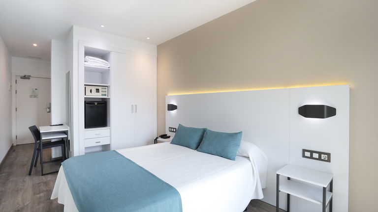 Si te apetece vivir una experiencia diferente, nuestra Habitación Centro Histórico es para ti. Situada en la parte trasera del hotel, esta estancia cuenta con un balcón francés que se asoma a una calle peatonal del casco antiguo de Benidorm, aportando un toque de encanto local y tranquilidad que enamora a nuestros huéspedes.