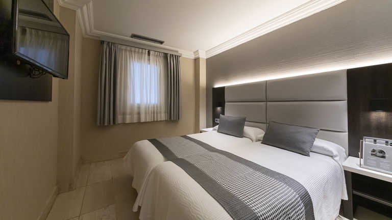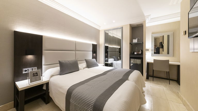 Esta habitación cuenta con dos camas individuales y una distribución generosa, perfecta para quienes buscan amplitud sin necesidad de vistas exteriores. Su diseño es sobrio y elegante, con acabados que reflejan la identidad boutique del hotel y detalles que invitan a quedarse.