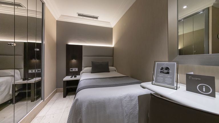 La Habitación XS Roncesvalles es nuestra propuesta más compacta, pero también una de las más eficientes. Pensada para quienes viajan con equipaje ligero y muchas ganas de aprovechar la ciudad, ofrece un espacio íntimo y silencioso, ideal para desconectar después de un día intenso.