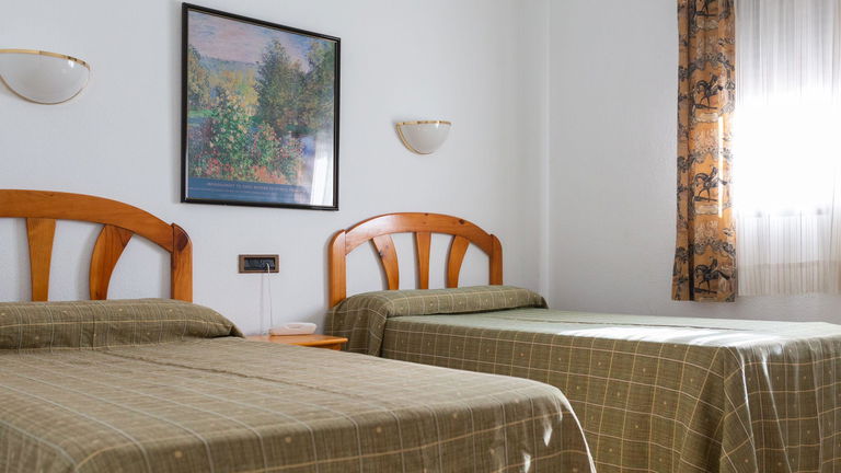 Habitaciones con dos camas que disponen de artículos de aseo gratuitos, conexión a internet y aire acondicionado, entre otros.