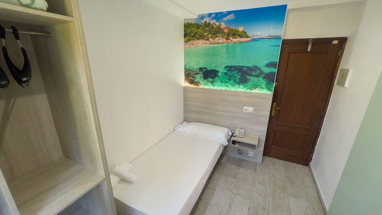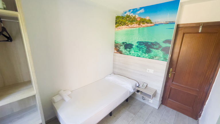 Si viajas solo y buscas una estancia tranquila y sin complicaciones en Mallorca, nuestra Habitación Individual es la opción perfecta para ti. Con un diseño funcional y un ambiente acogedor, ofrece todo lo que necesitas para descansar cómodamente tras un día de playa, turismo o trabajo.