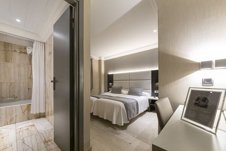La Habitación L Pamplona combina espacio, tranquilidad y funcionalidad en un entorno pensado para el descanso. Situada en la parte interior del hotel, ofrece una experiencia silenciosa y relajante, ideal tanto para estancias de trabajo como para desconectar del ritmo urbano sin salir del centro histórico.