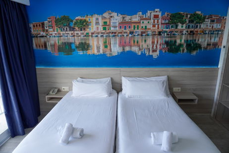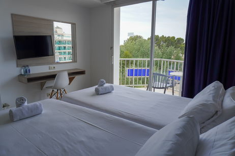 Cómoda, luminosa y funcional. Así es nuestra Habitación Doble Estándar, ideal para parejas o amigos que desean una estancia relajada en Playa de Palma sin renunciar a la comodidad. Con una superficie de 15 m², ofrece un espacio perfectamente distribuido para disfrutar tanto del descanso como de los momentos de desconexión.