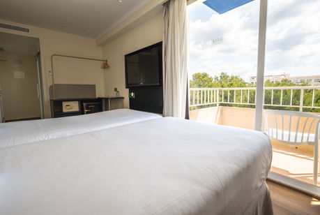 Su mayor atractivo es la conexión directa con el exterior: el balcón, orientado a una zona tranquila del hotel, te permitirá disfrutar del clima mediterráneo con total privacidad. Es la habitación ideal para parejas que quieren desconectar en un ambiente relajado, o para viajeros que buscan algo más que lo básico sin renunciar a una buena relación calidad-precio.